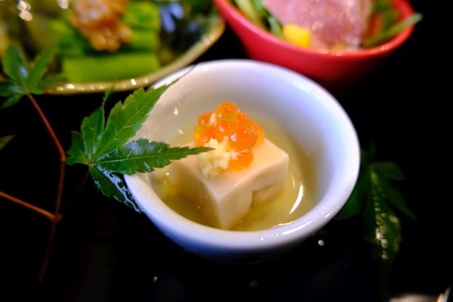 茶碗蒸しは松葉蟹と冬瓜と湯葉入り、蟹の旨味が仄かに効いています。揚げ物は旬のマナガツオと茄子、揚げることで真魚鰹独特の旨味をしっかり閉じ込めています。