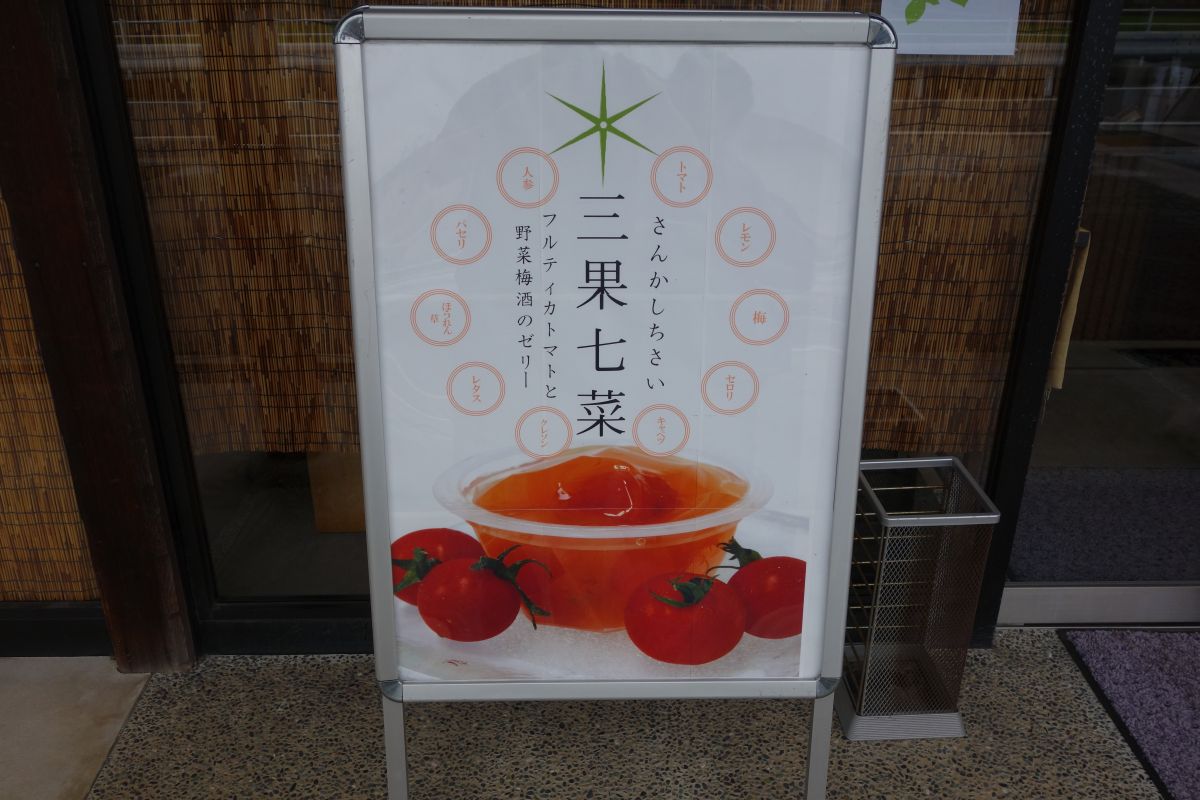 コラボ商品は「三果七菜」(360円)、希少価値の高いフルティカトマトを使用し、七種の国産野菜・二種の果実をふんだんに使用した梅酒に仕込んだゼリーです。