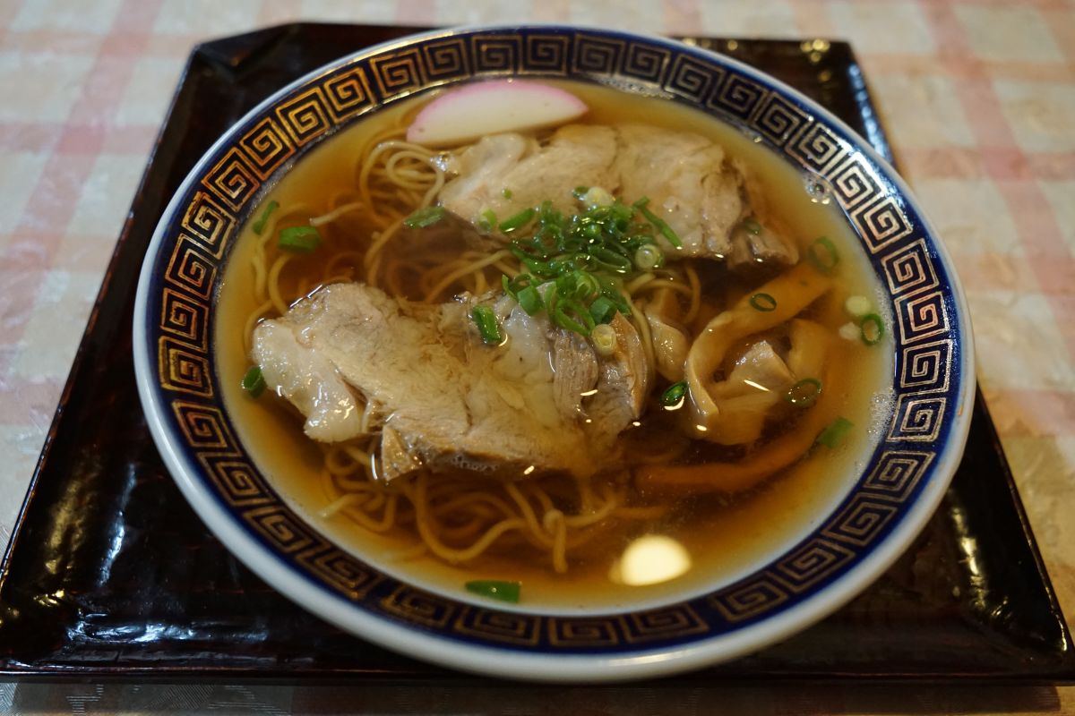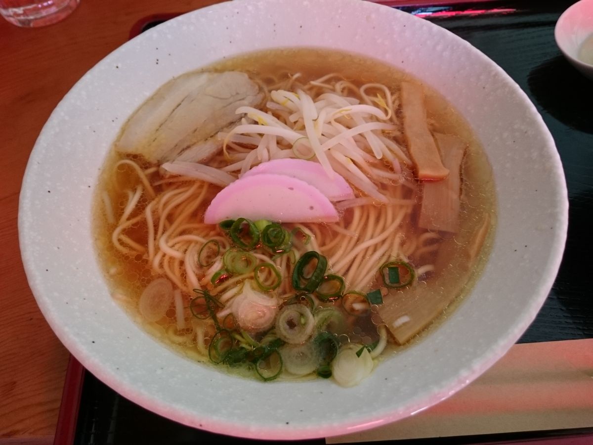 私は中華そば(500円)を、連れは焼飯(550円)を注文、待つこと6~7分で着丼です。スープは醤油ベースで鶏ガラはそれほど感じさせないあっさりタイプ、麺は中細で若干の縮れがあります、デフォでいい感じの硬さです。チャーシューはかなり大きく脂身の少ないものが2枚、締まった肉質で食べ応えありました。