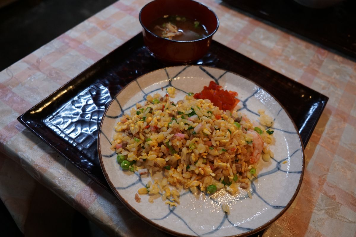 連れの炒飯は、懐かしの細切れ蒲鉾入り、玉子コーティングされておりパラパラです。海老やグリーンピースも入っており具沢山、量が少ないのが玉に瑕ですが食堂炒飯としてはレベルが高いと思います!