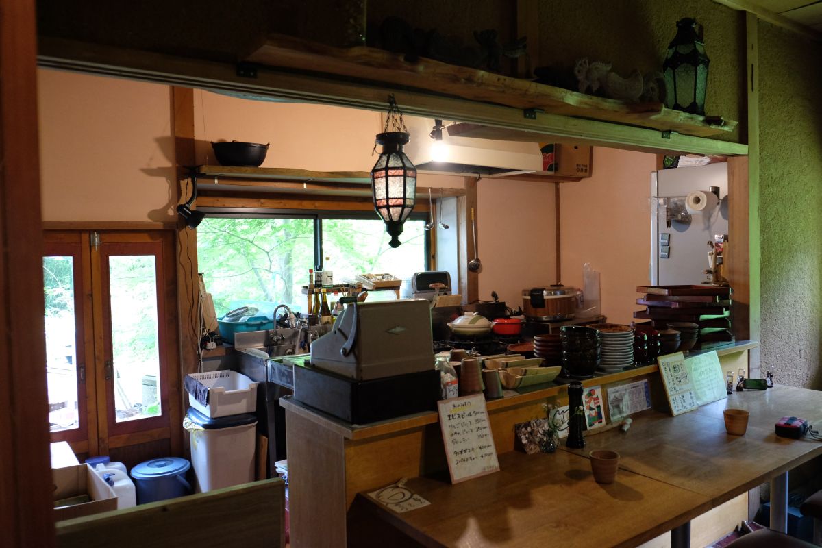 店内は自然光を取り入れた質実剛健な仕様になっています、使われていない庫裏を一年かけて改装されたとのこと、窓からは自然のままの笹や薬師院の境内が見渡せます。厨房に隣接したカウンター席の他に座敷席もありますのでゆったり寛げます。