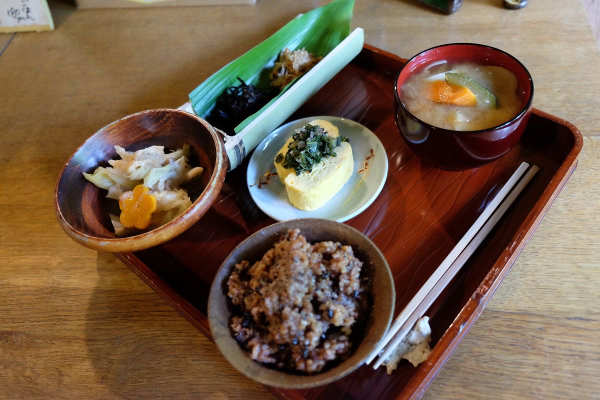 当店のランチは酵素玄米ごはんとおかず4種、具沢山味噌汁の構成になります。人工調味料を使わないマクロビオティックを取り入れたもの、当日も鉄鍋で野菜の旨味を引き出したひじき煮・羅漢果を使用した切り干し大根・店主こだわり卵のだし巻き等々、身体が喜ぶ健康食の数々を堪能しました。