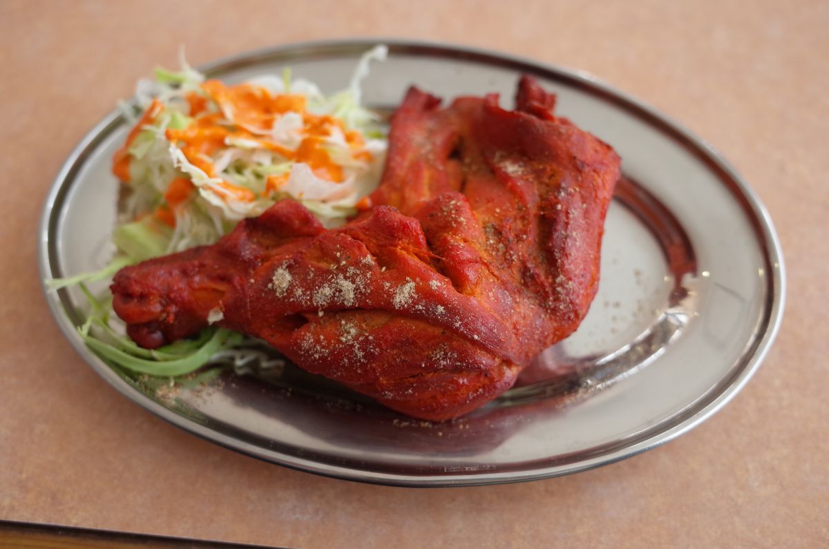 タンドリーチキンはかなり大きなサイズですね、香辛料で真っ赤に染まっておりスパイシーな味わい、ジューシーさはないですが満足度高いです。サラダ・ラッシーが付いての790円はお得な価格設定だと思います。