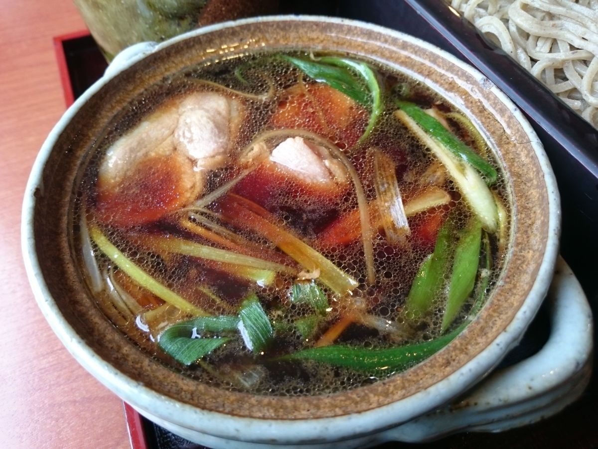 鴨肉がしっかり入ったつけ汁、かなり濃い目の味わいです。長ネギがしっかり入っており、濃厚な出汁にアクセントを与えています。