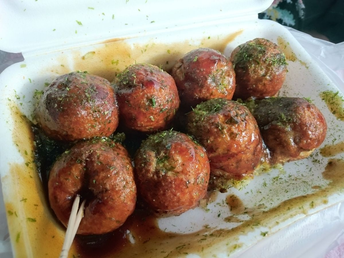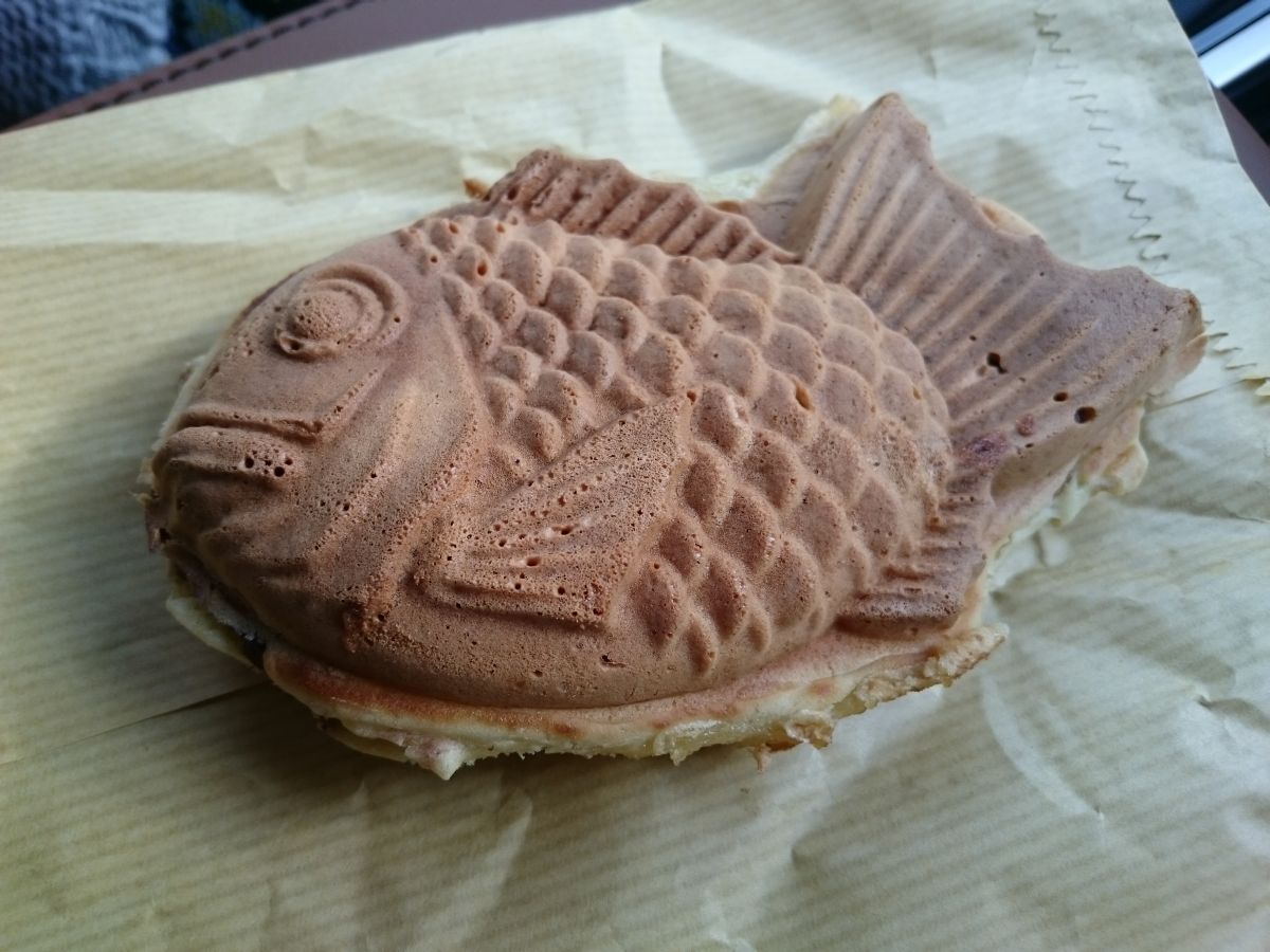 営業は13時過ぎ頃から夜22時頃まで、交通量の多い県道沿い、稼ぎどきは夕方以降なのでしょう。たこ焼き(300円)とたい焼き(80円)を購入、イートインスペース等の洒落た場所はありませんので車内で頂きました。焼き立てでなく保温庫から出された二品、たこ焼きは表面が少し硬くなっていました^^; ソースは濃い目、青のりは適量、蛸もしっかり入って美味しかったです。