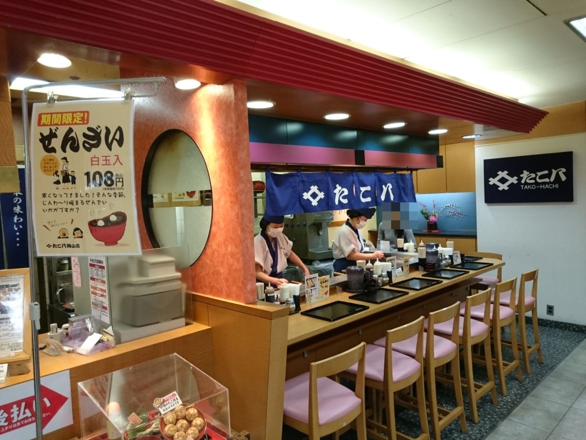 年末の食料品買い出しで岡山高島屋さんを訪れました。初売りも人気ありますが年末の食材買い出しで食料品売り場も大繁盛です^^; 小腹空いたので買い物前に人気のたこ八さんでたこ焼きを頂くことに...当店は人気がありいつも混み合っているので早めに入店です。