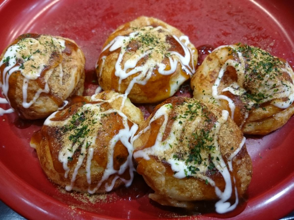次に”明石焼き”風に出汁をくぐらせて頂きます、薄めの鰹だしなのでこれも素材の良さを楽しめますね。最後にソース・マヨネーズ・鰹粉・青のりをかけて頂きます、定番の味わいですがこれもしっくりきます。