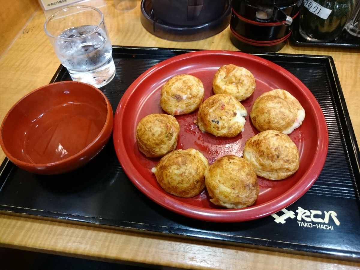 注文はたこ焼き(8個 536円)、カウンター越しに焼き作業を見ることが出来ます。なみなみと溶いた小麦粉を注いでじっくり焼き上げます。たこ焼きサイズが大きく、全体的にふわとろ感が強いです。まずは素焼きのままで味わいます、中はトロトロで高温...急いで頂くとやけど必須です^^;