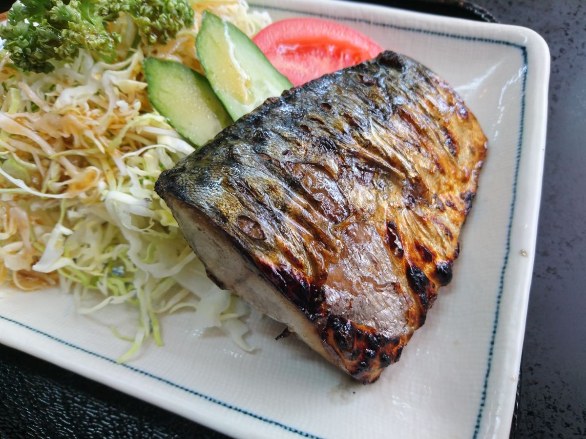 メインは鯖の塩焼き、注文後大将が網で丁寧に焼いてくださいます、皮がパリッとして脂のノリも良い焼鯖、白ご飯が進む美味しさですね。