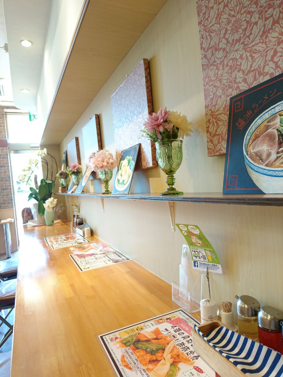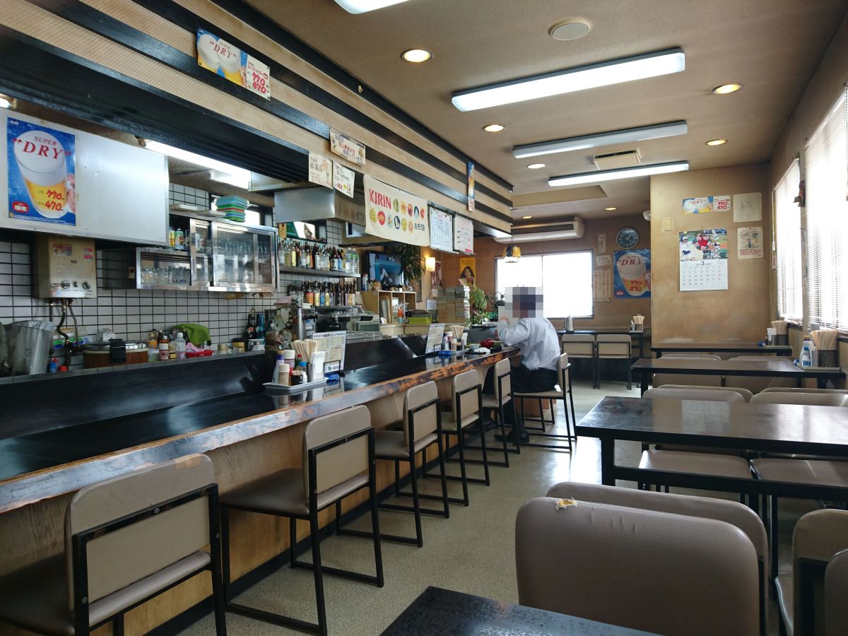 店内は横長構造、厨房前にカウンター席・窓際にテーブル席が連なります。スタッフの方は多いです、ご家族での経営かどうかは不明ですが、総勢4名で切り盛りされています。
