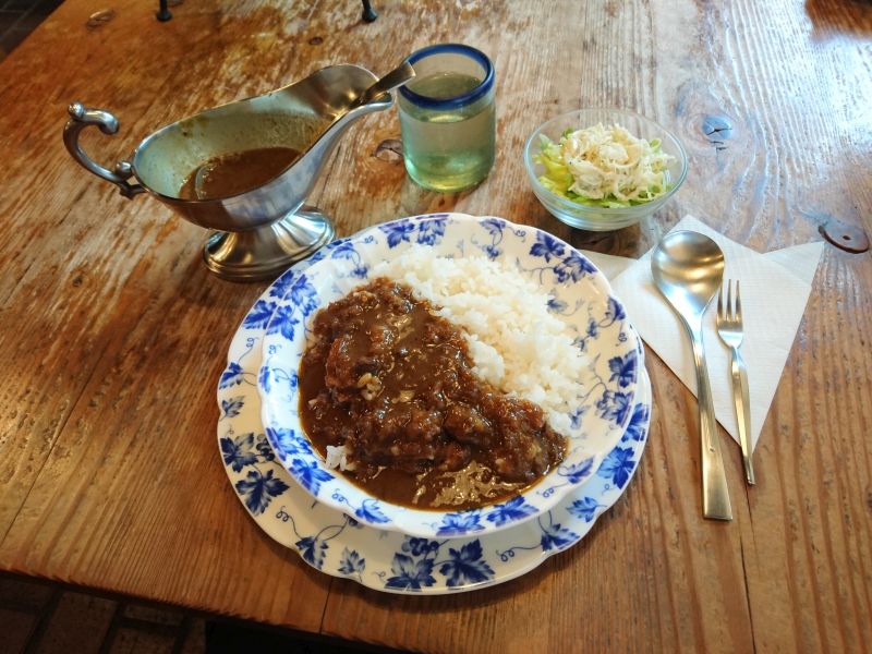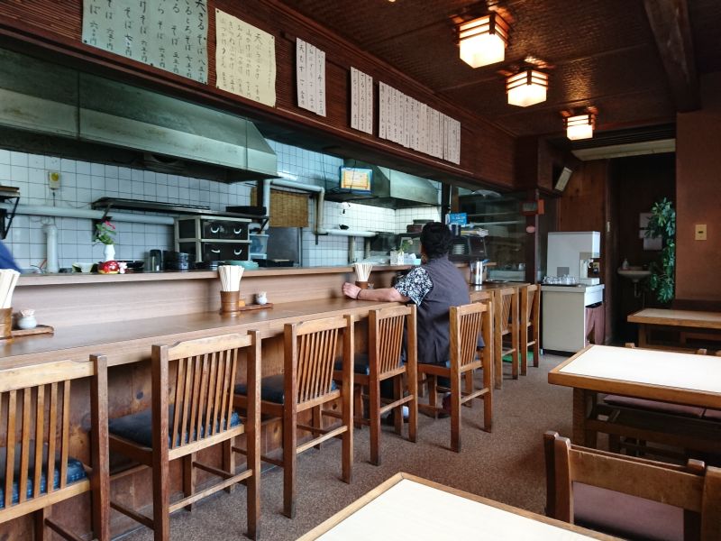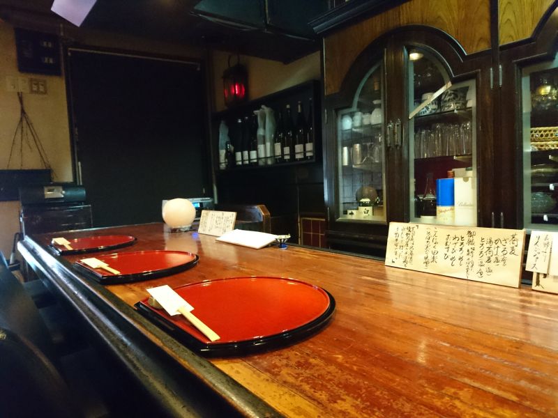 店内はカウンター席オンリー、奥に長い構造、スナック系の造りかと思ったのですが以前は洋食屋さんだったそうです。年季の入ったカウンターの板が歴史を物語っています。