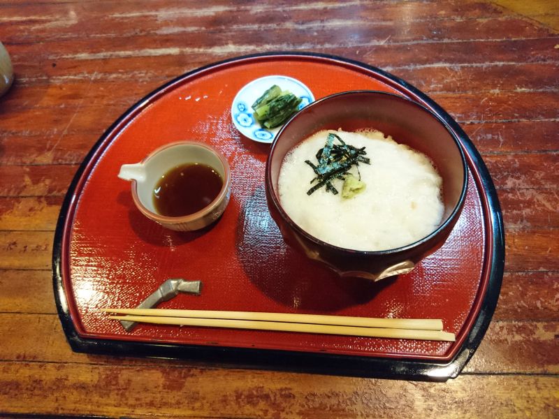 とろろめし、とろろ自体には味が付いていませんので、別皿の出汁を加えます。そば出汁を薄めたものでしょうか、素朴なとろろにしっかり合いますね。そば一枚だとお腹空きますので、このとろろめしとのセットはお薦めです^^