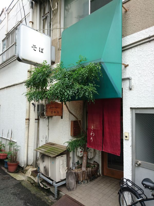 今日の福山ランチは蕎麦の「とわり」さん、福山駅から徒歩7~8分でしょうか、商店街の路地裏を斜めに横切りながら到達! 狭い路地裏ですが白い”そば”電光板が迎えてくれます。