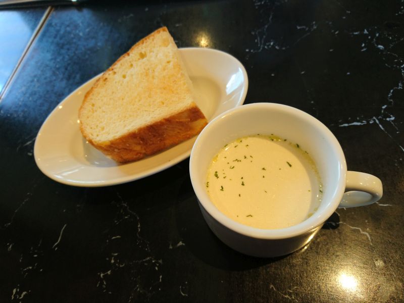 ご飯はふっくら、スープは貝の出汁が効いたクラムチャウダー...メインの付け合せもしっかりで、価格の割に充実した内容に満足です(・∀・)