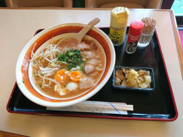 注文は勿論「味噌ラーメン(800円)」、優しそうなお母さんがカウンター奥の厨房で作ってくださいます。待つこと7~8分で完成、白菜漬けも付いています。