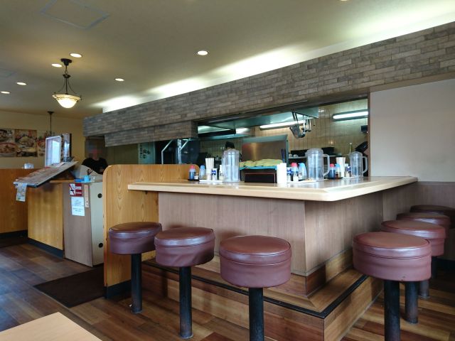 店内は昭和の風情が色濃く残っています、吊り下げ式電灯とベージュ色の椅子が懐かしさを感じさせます^^