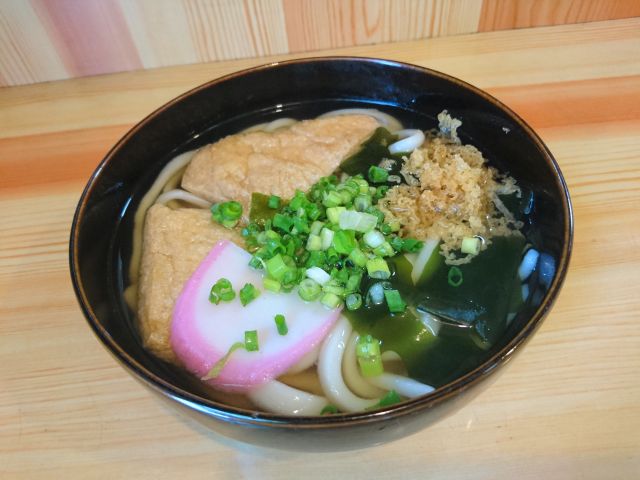 うどんは中サイズで硬質感の際立つタイプ、コシが強いのとは少し趣が違います、モッチリ感はなく喉越しは良いです。ぶっかけ出汁は鰹風味で甘辛いタイプ、この出汁に揚げ玉が溶け出すとコクが増します。