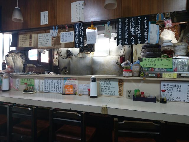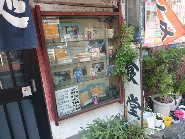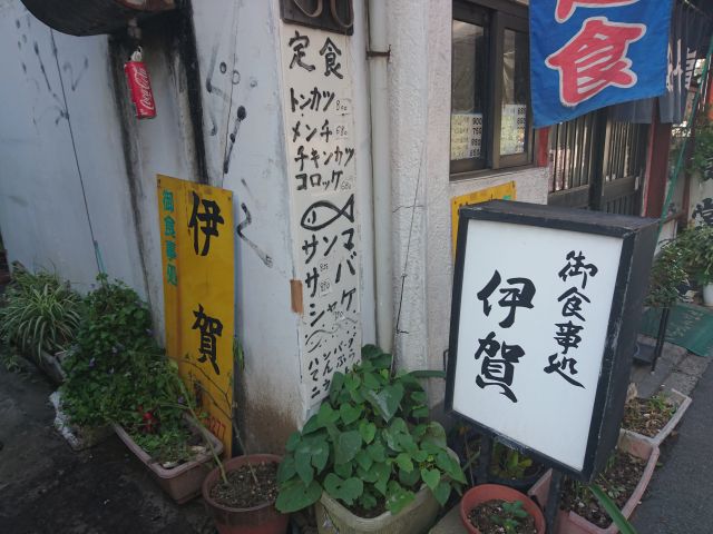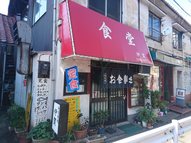 今日は朝から晴天、昨日は雨に祟られたので背中の甲羅をしっかり乾かしながら「食堂 伊賀」さんまで歩きます。中野駅から徒歩6~7分で到着、赤い日除け看板が目立つ外観、店頭手書きのメニューがいい感じです^^;