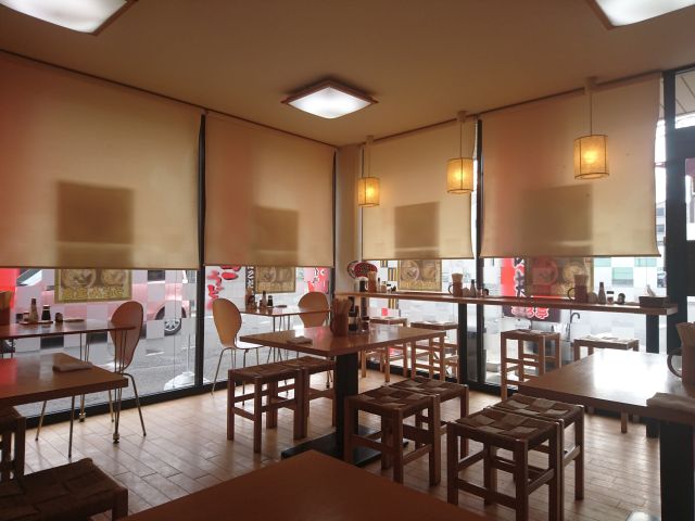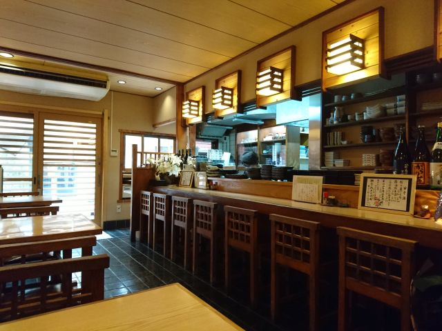 入り口は奥まっていますが中は想像以上に広々空間、カウンター席とテーブル席がバランス良く配置されています。12時半頃の訪問で4割程度でしょうか、お一人様なので入り口近くのカウンター席に着きます。