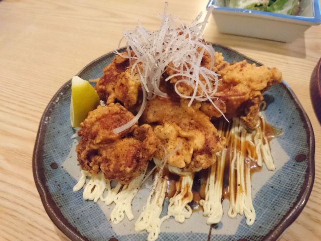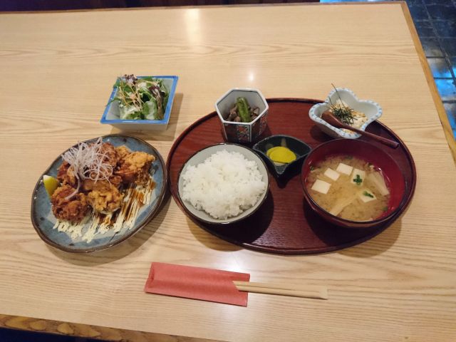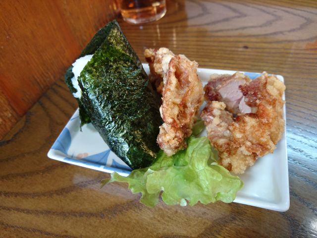 セットの鶏からはサイズ小さめですが揚げたて、皮の比率が少し高いように思いました。おにぎりは手作り感のある中サイズ、家庭的な味わいでラーメンにも合いました。