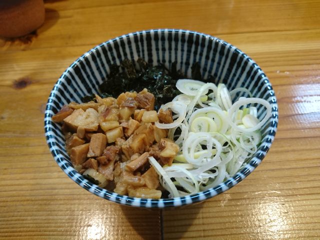 麺は中細ストレート、デフォでしっかり硬めです。脂バランスの良いチャーシューは小サイズが3枚、シナチクも若干甘め、もやし・青ネギはしっかり入っていました。
