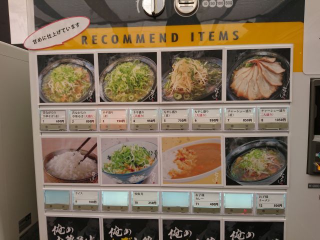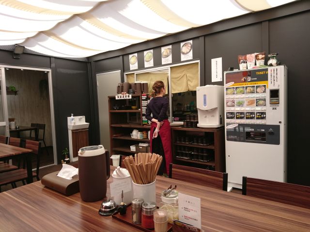 店内は外観から想像するよりも広めです、入り口正面 厨房前に券売機がありますので発券しスタッフさんに手渡し、水・丼片付けも自分で行う半セルフ方式を採用されています。