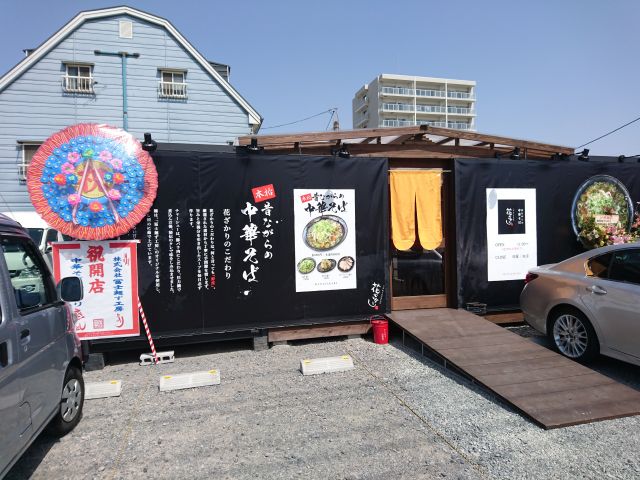 今日も晴天、3月終盤でここまで晴天続きは珍しいですよね!! 今日のランチはラーメンの新店さんで頂きましょう、「中華そば 花ざかり 大野辻店」さん、”こだわりダイニング 花ざかり 大野辻店”さんの右隣に3月26日にオープンされました。野田店さんと同じく外観は黒貴重でシックな雰囲気です。