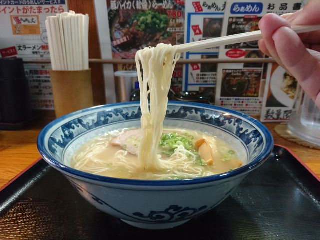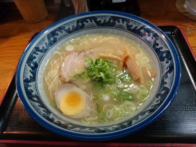 待つこと3分程で着丼、黒い丼で登場です。スープは癖のないとんこつ、獣臭ないですが味は長浜ラーメンに近いかな、濃さは丁度いい塩梅でした。