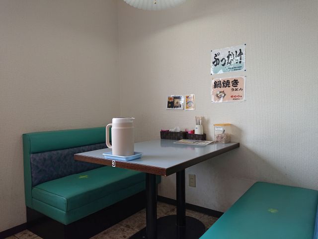 店内はカウンターとテーブル席、うどん屋さんにしては整然とした雰囲気、以前は確か宝天さんという中華料理店でしたね!!