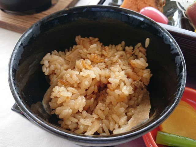 蛸しゃぶは鰹出汁で頂きます、先に野菜を入れてしっかり煮立ってしゃぶしゃぶ...さっと潜らす程度が良いでしょう、瀬戸内の幸を満喫です。ご飯は鶏ごぼう仕様、鶏出汁がしっかり出て好みの味わいでした^^