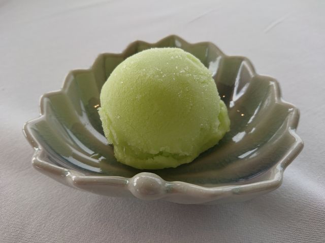 食後には青りんごシャーベットを頂きながらのんびり景色を楽しみます...この後は少し岡山城周辺を散策しましょ!