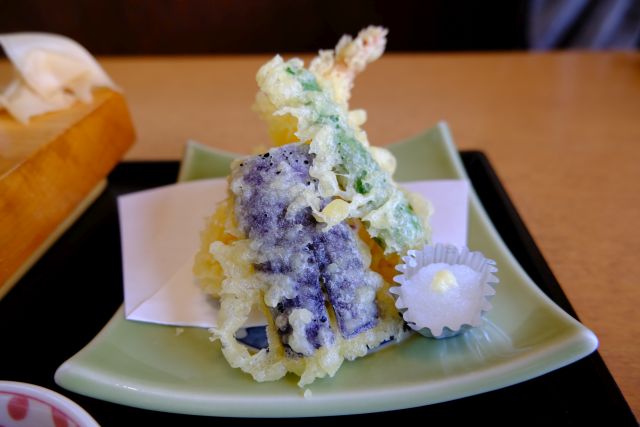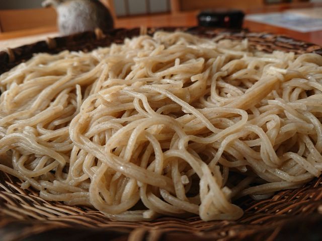 そばはかなり細いですね、八ヶ岳山麓or信州産の玄そばを石挽されている当店、細いながら風味はしっかりで喉越しも良いです。