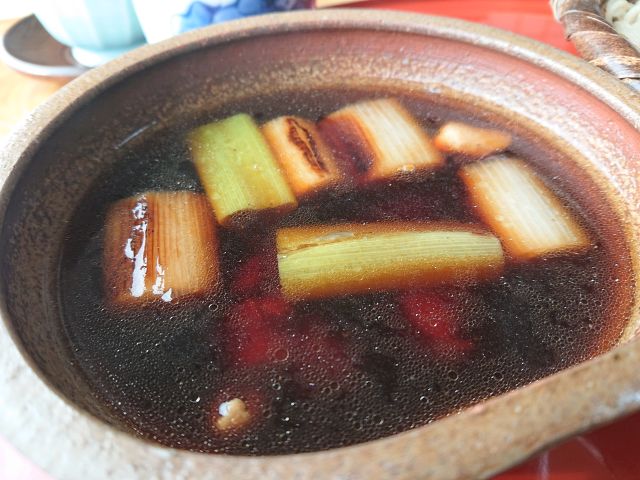 つけ汁は3種の削り節と利尻昆布&乾燥椎茸で出汁を取っています!、若干かえしの甘さを感じますが地鶏の脂が溶け込んで旨味がしっかり感じられます。甘みは白ネギからも出ていると思います。