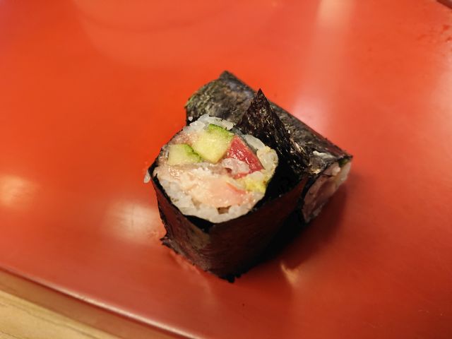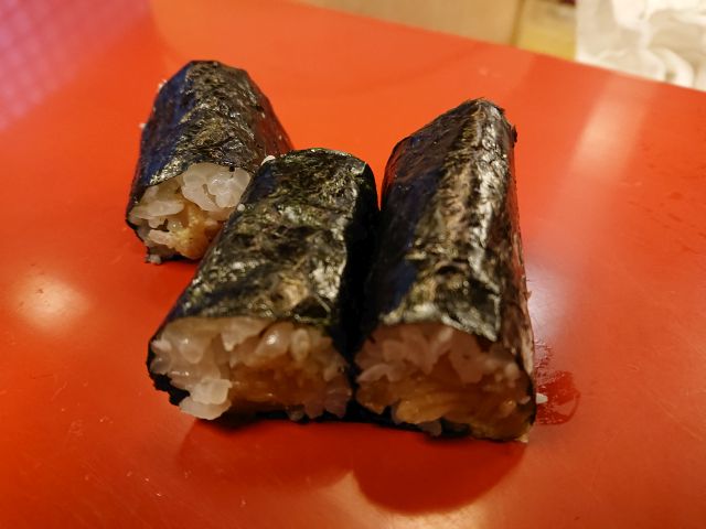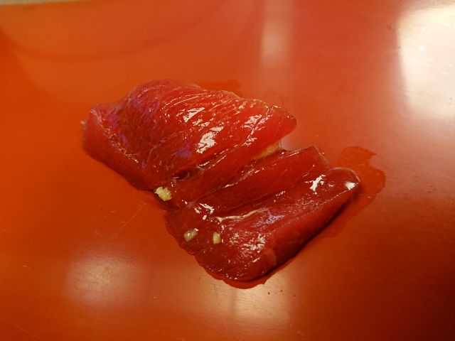 カルビ5切れ・牛タン3切れ・豚とろ4切れ、火力の強い無煙ロースターで早速焼きましょう。カルビはそれほど大きくないですが肉質良く、甘い味わいで美味しいですね! 牛タンは3切れですがしっかり厚みがあり食べごたえあります。豚とろは脂のりが良く、上品な甘さが魅力、白ごはんが進みます!