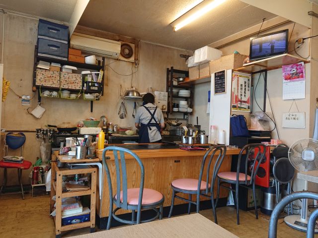 店内は鉄板周りのカウンター席と壁際のテーブル席、昼から地元の方が呑まれていることが多いので素人衆は若干入り難い雰囲気あります^^;