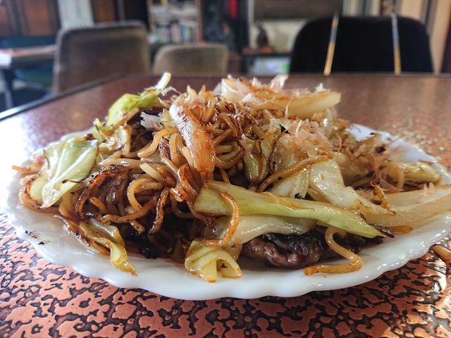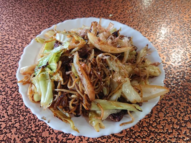 麺は細麺でしっかり炒められており香ばしい味わい、豚肉は適量でキャベツ・玉ねぎは沢山、野菜の甘みがしっかり出ています。ベテランのお母さんが作る優しい味わいの焼きそばを最後まで美味しく頂きました。