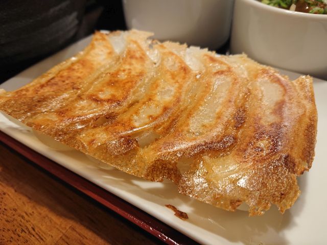 餃子はしっかり羽根付き、パリッと仕上がっています。具は野菜中心ですが適量、大蒜はほとんど効いていませんがランチには有り難いですね。小鉢も美味しく、レベルの高い餃子定食でした^^