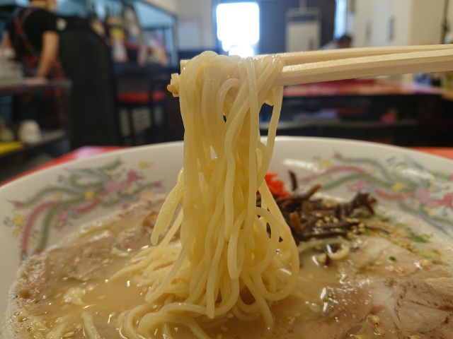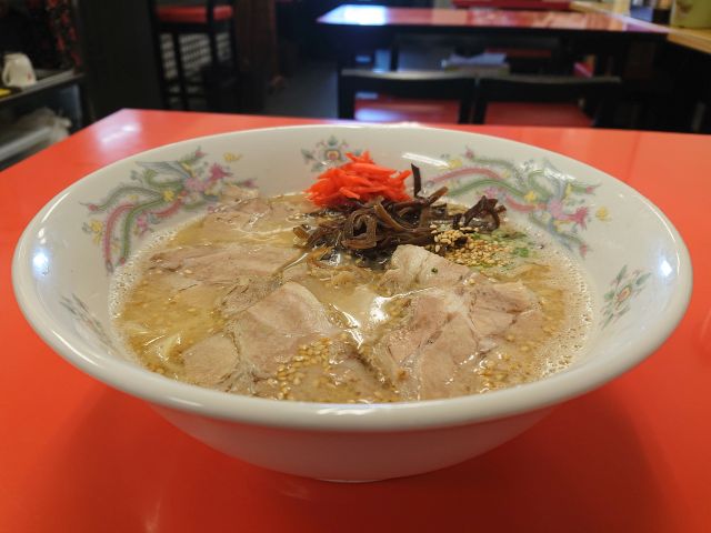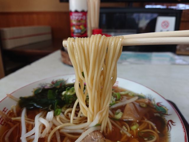 麺は中細ストレート、加水率低めでスープをしっかり口元まで運んでくれます。チャーシューは脂バランスの良い小サイズが2枚、旨味しっかりで美味いです。他の具材はわかめ・花蒲鉾・シナチク・太もやし・青ネギ、脇役も高品質でバランス良いですね。最後まで一気呵成に頂きました!