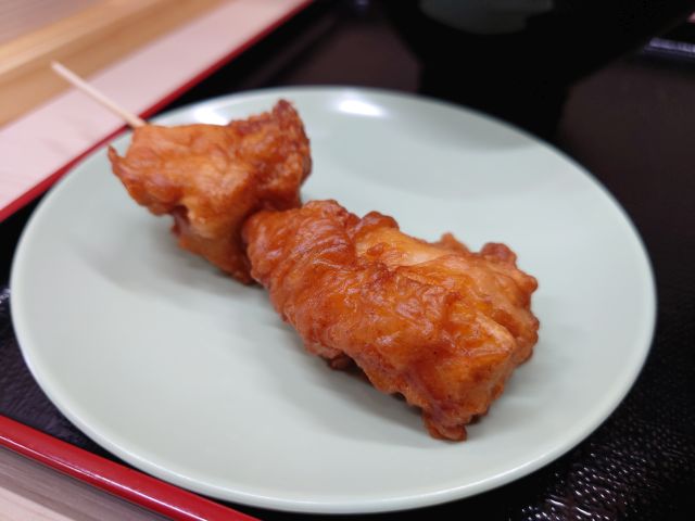 つけ汁は3種の削り節と利尻昆布&乾燥椎茸!、甘さの中に素材の旨味をしっかり感じられます。鶏肉は小サイズが5~6片、脂身は少なめで健康的な味わい、焼いた太葱も入っおりバランスも良好です(*^^*)