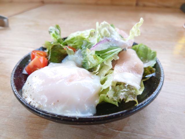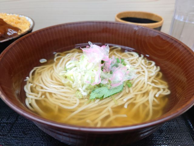 おにぎりは地元佐伯産コシヒカリを使用、硬めの食感の塩むすび、一個ですがかなり大きめです。だし巻きは二個で厚みがしっかり、そば粉出汁で甘みをかなり抑えています。このおにぎりセットはざるそばとの相性が良く、皆さん注文されています!!