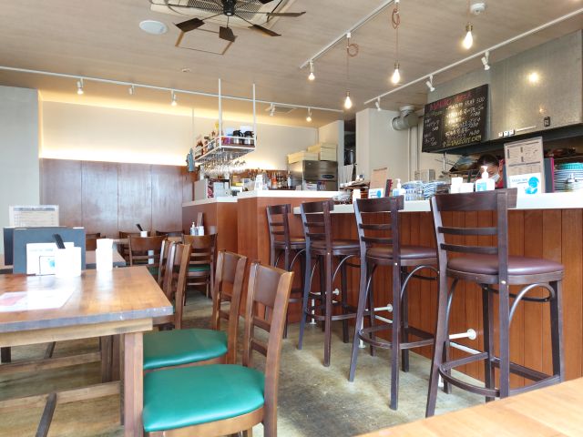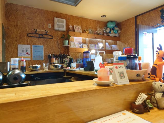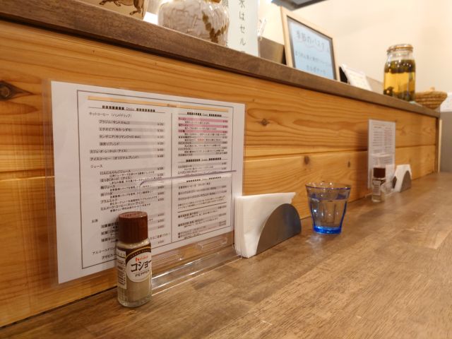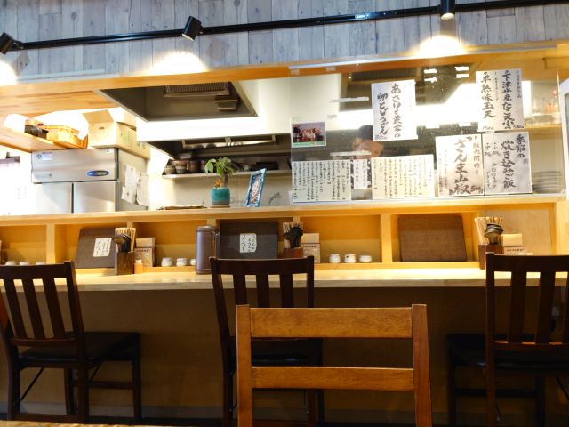 店内はスクエアな空間、厨房を囲む形でコの字型カウンター席、窓際には小上がり席があります。13時過ぎの訪問で先客2名さんです。