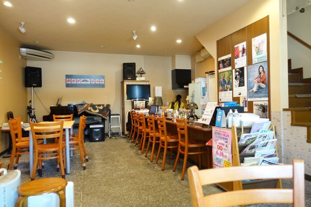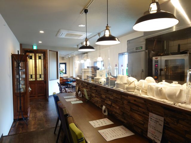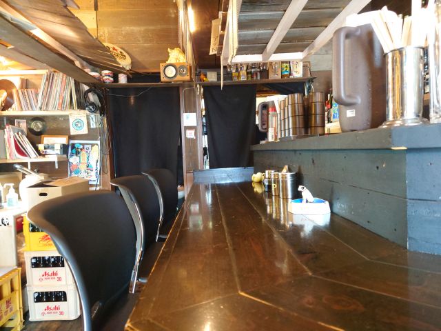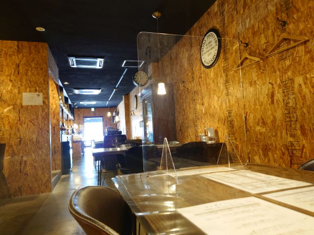 店内は奥に長い構造、照明は若干暗めでしょうか。手前には厨房とカウンター席、奥にテーブル席の構成、おひとり様でしたが手前のカウンター席がテイクアウトで埋まっていましたので奥のテーブル席に着きます。