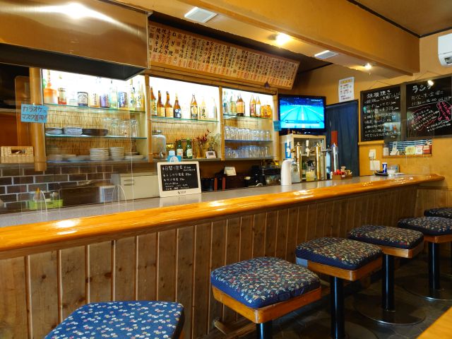 店内は奥に長い構造、厨房を囲む形で鍵の字型カウンター席が奥に延びます。メニューは豊富で洋食系なら殆どを網羅、格安メニューも多いので財布の軽い私には大助かりです^^;