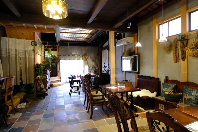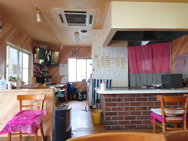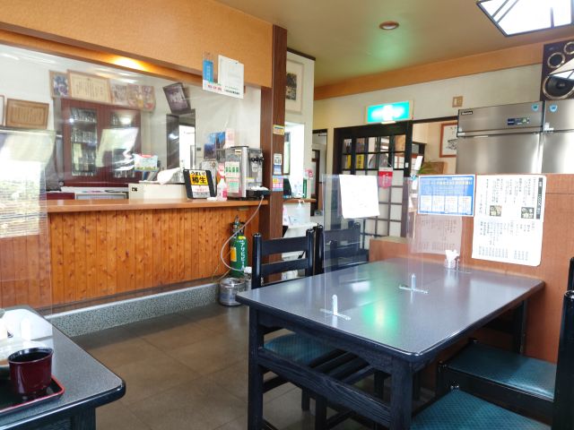 13時過ぎの訪問で先客さんなし、店内はテーブル席が多いですね、外観から想像するよりかなり広いです。おひとり様ですが中央付近の4人掛けテーブルに着きます。