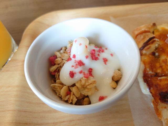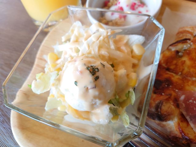 卵焼きはクレープ仕様、中にはコーンも入っています。濃いめの味わいでお粥との相性もいいですね、パクパク頂きました(*^^*)