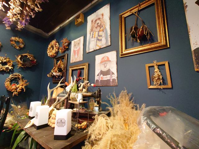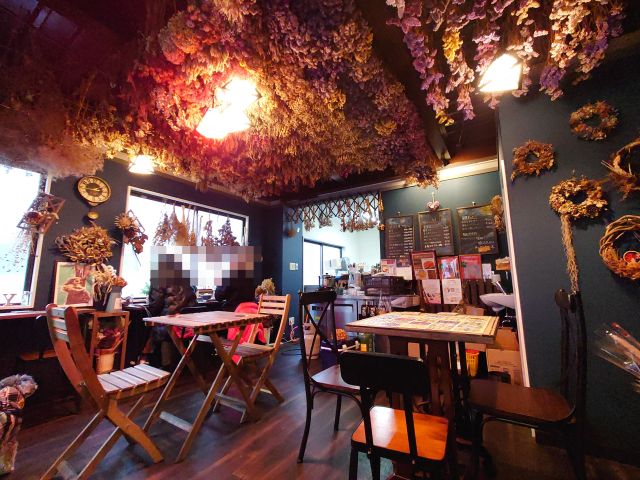 7時過ぎの訪問で先客4名さん、店内はドライフラワーが所狭しと飾られています、珍しい草花もあり暫し見惚れます!!