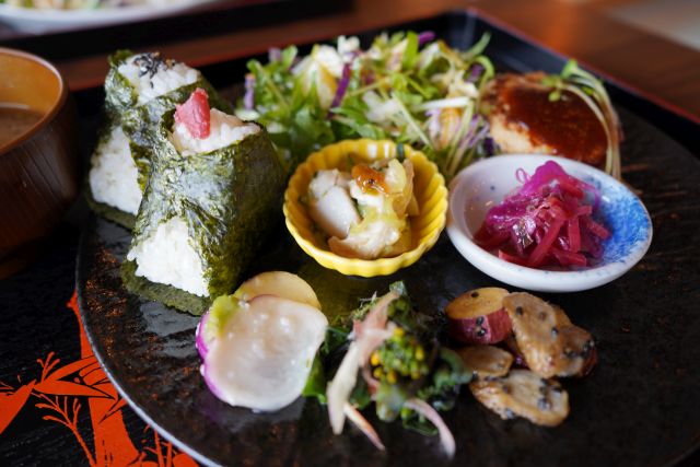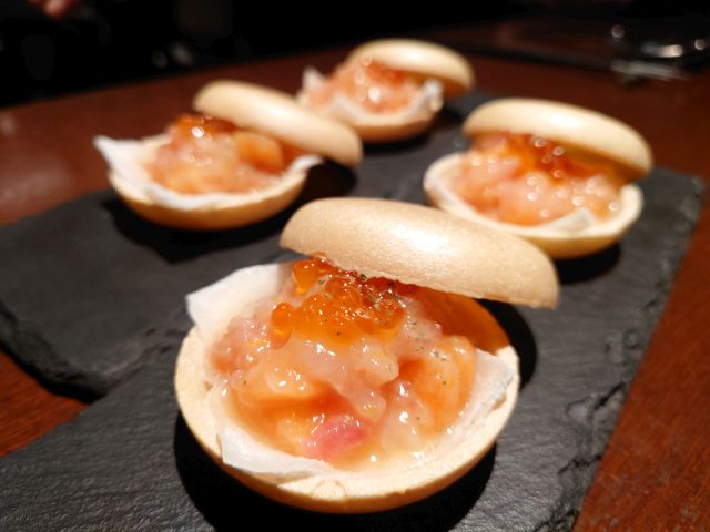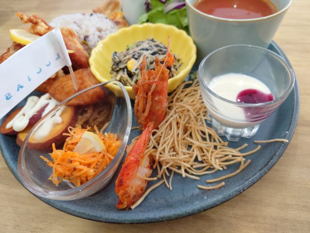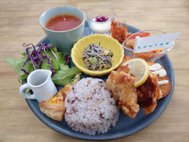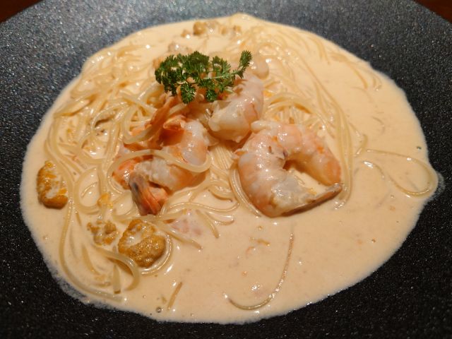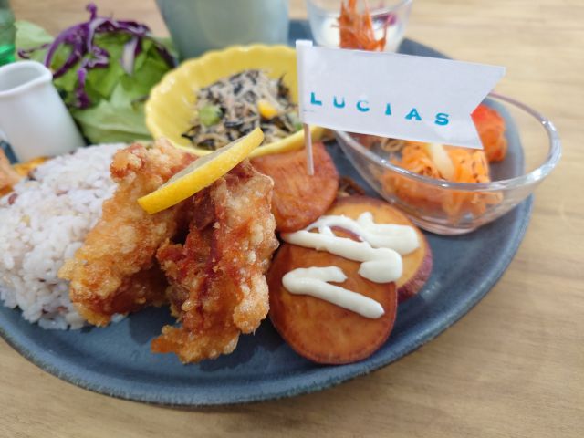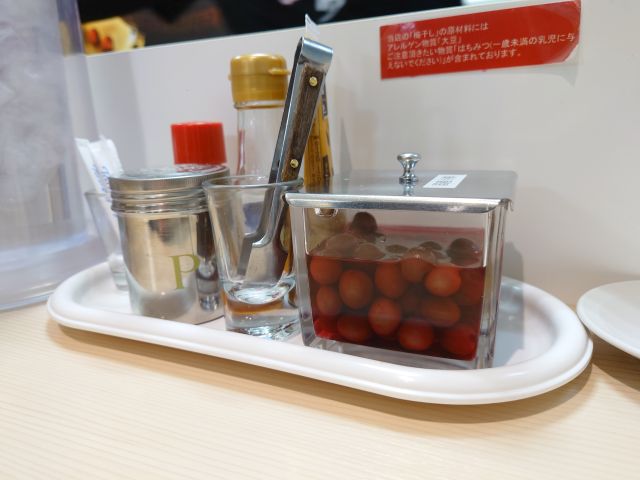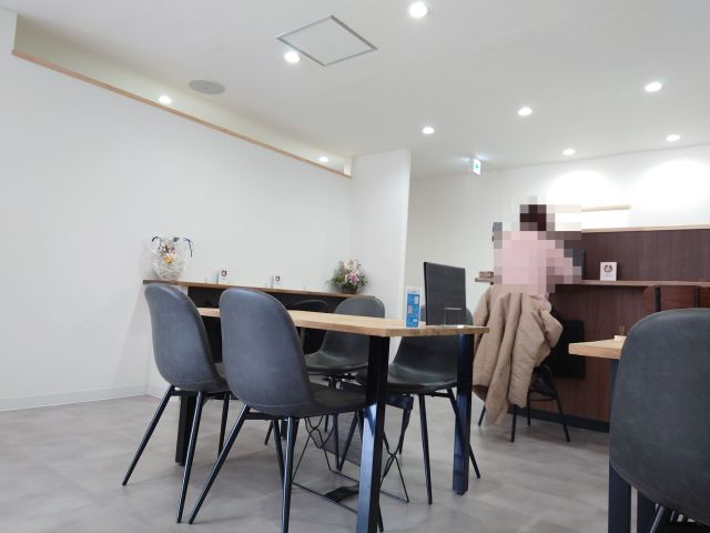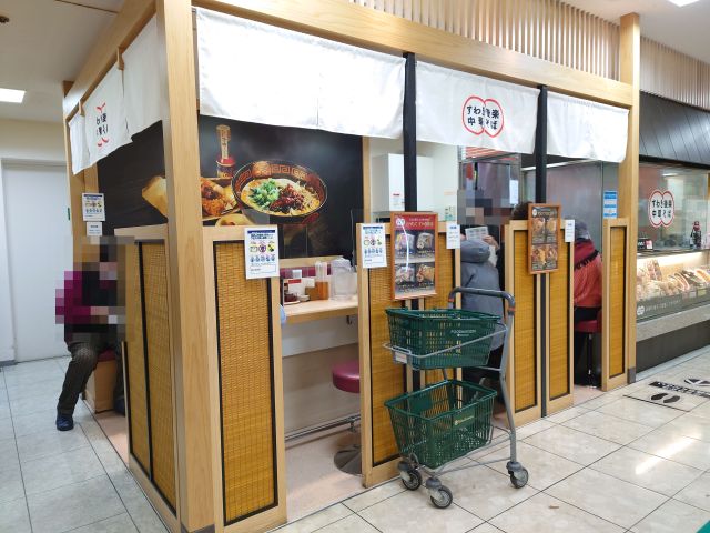 食料品売場の一角、たこ焼き屋さんの西側になります。8席と手狭な空間ですが通路とは仕切りがあり店舗らしくなっています。