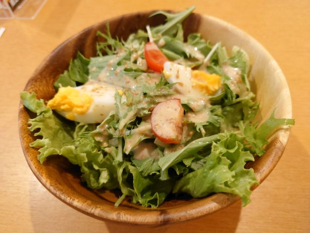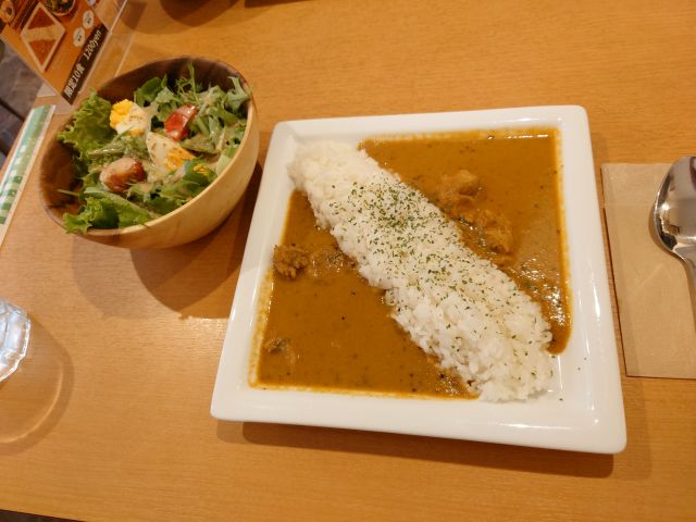 注文は限定の「大人様ランチ」、サラダとカレーが10分程でやって来ました、サラダは量が多いですね、何とおかわり無料だそうです!!