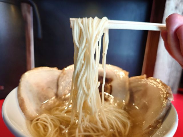 麺は冨士麺謹製細仕様、上質なスープに馴染んでいますね、好みの仕上がりです。チャーシューは厚みがしっかりある円形タイプ、弾力があって歯応え十分、脂身のバランスも良好、このチャーシュー3枚はかなりボリュームありました^^