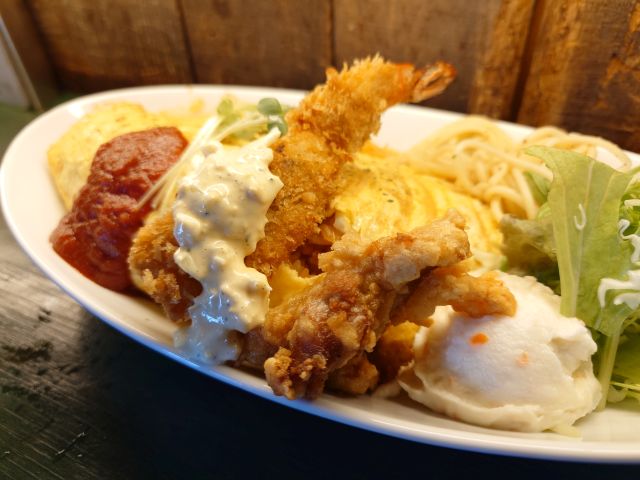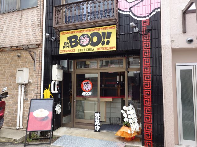 先週オープンの「ミスター ブー」さん、連休谷間のサラメシで伺いました。商店街から少し北に入った駅前町、昼より夜の方が賑やかな界隈です。